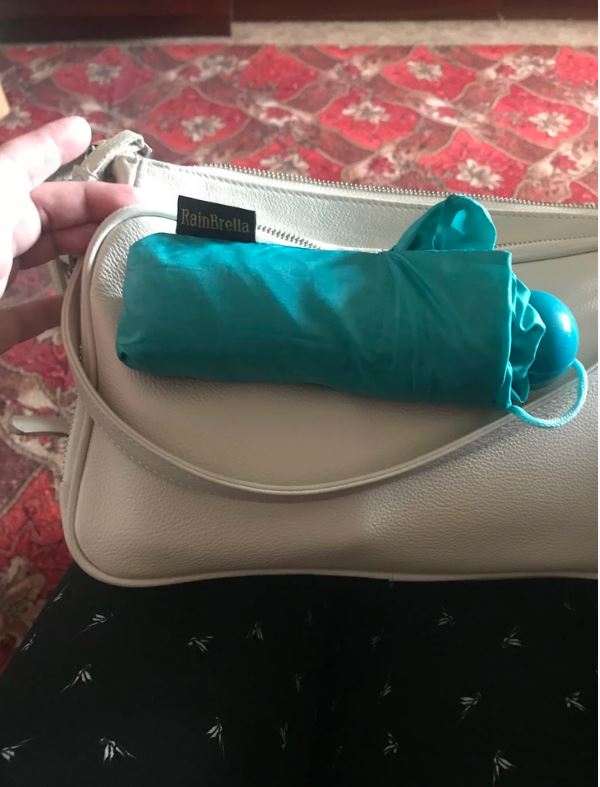 Компактный. Есть капсула,чтоб сырой зонт положить сразу в сумку и не оставить, например в автобусе. Рекомендую 😍