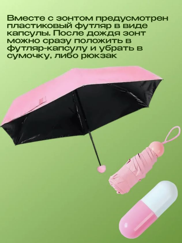 Складной зонт в капсуле – это не только практичное решение для защиты от непогоды, но и модный аксессуар, который подчеркнет ваш стиль. Его легко носить с собой, а благодаря элегантному дизайну он подойдет как для повседневной носки, так и для особых случаев